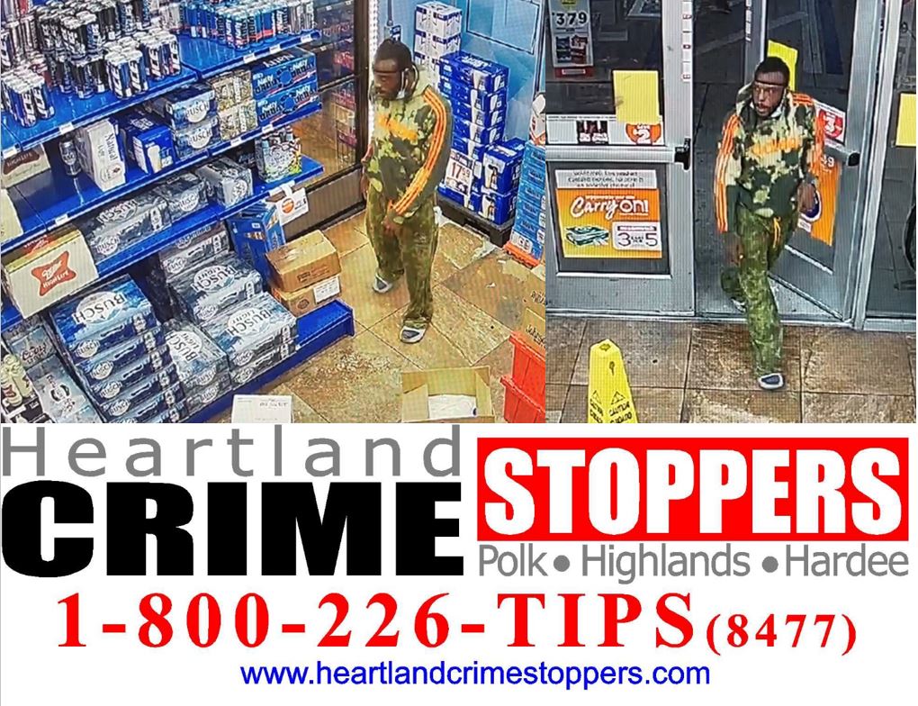 If anyone has information on this crime or recognizes this suspect, they are urged to contact Detective Holsonback at 863-577-1629 and reference case number 23-8627, or contact Heartland Crime Stoppers and remain anonymous: